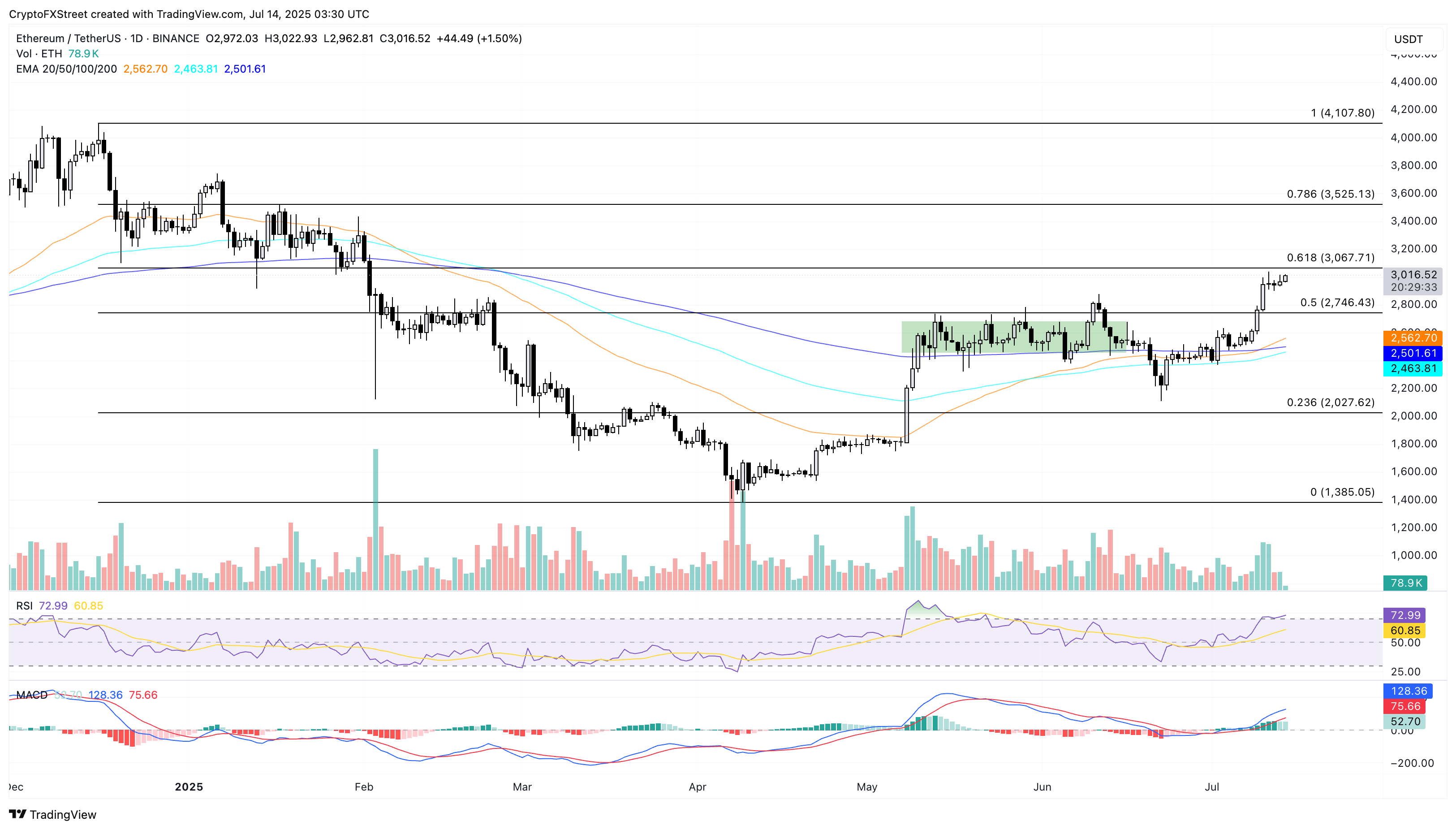 ETH пробил 3,000 долларов, бычий тренд усиливается
