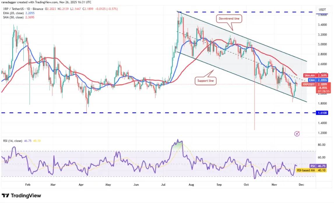 Восстановление XRP сталкивается с давлением продаж на уровне 2,20 USD по 20-дневной EMA, но быки все еще сохраняют давление.