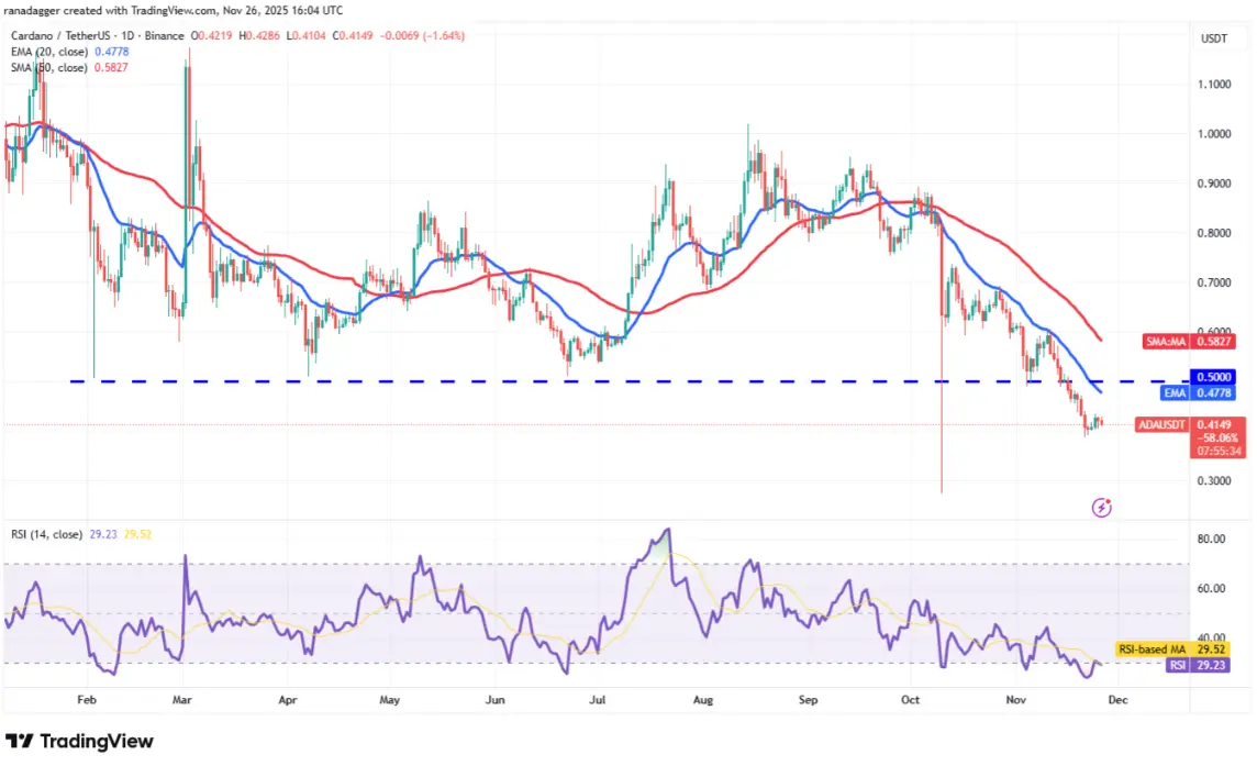 Ежедневный график ADA/USDT | Источник: TradingViewМедведи попытаются возобновить нисходящий тренд, потянув цену ниже уровня 0,38 USD. Если им удастся это сделать, пара ADA/USDT может упасть до панического минимума 10/10 в 0,27 USD.