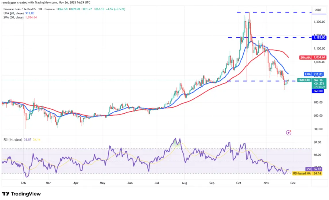 Напротив, если цена BNB начнет расти и превысит 20-дневную EMA, это указывает на то, что рынок отверг прорыв ниже 860 USD. В этом случае пара BNB/USDT может отскочить к 50-дневной SMA на уровне 1.034 USD.