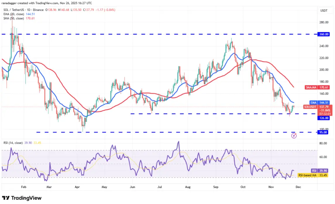 График SOL/USDT на дневном таймфрейме | Источник: TradingViewПродавцы будут пытаться опустить цену Solana ниже уровня поддержки 126 USD. Если это удастся, пара SOL/USDT может рухнуть до 110 USD, а затем до 95 USD. Бычьи трейдеры ожидают сильной защиты на уровне 95 USD.