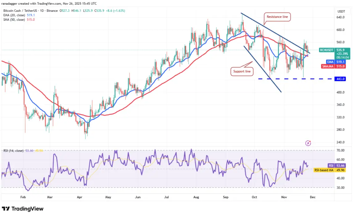 Покупатель пытается удержать Bitcoin Cash (BCH) на уровне 544,47 USD на уровне сопротивления, но медведи продолжают оказывать давление.