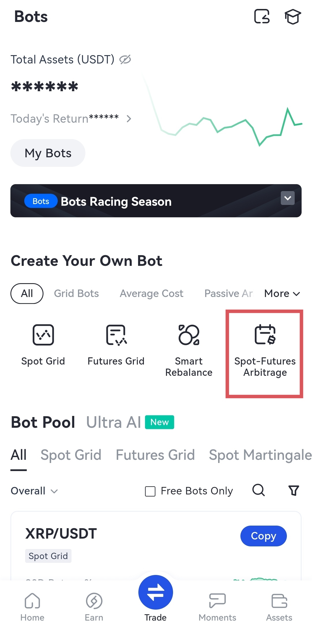 Bots - Bot Pool - Create a Bot - Reliable And Long Term Yield - Spot-Futures Arbitrage - Create