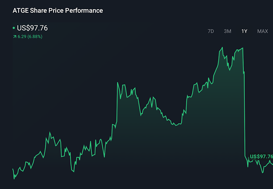 For investors, the key point is the new Covista name attached to NYSE:ATGE at a recent share price of $95.52. The stock has recorded a 133.2% return over 3 years and a 131.1% return over 5 years. The 1-year return of 7.7% and year-to-date return of 8.6% sit alongside a value score of 6. Together, these figures place the rebrand in the context of multi-year share performance.