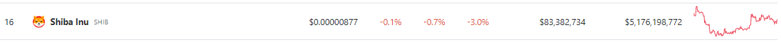 At present, the price of SHIB stands at $0.00000877, as per CoinGecko. However, recent market movements have caused some fluctuations in its value. Over a span of 24 hours, SHIB experienced a subtle decline of 0.8%, followed by a week-long decline of 3.0%
