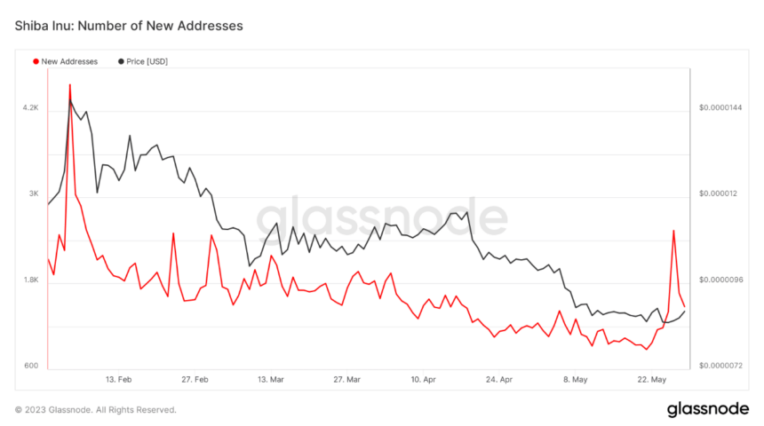 The Shiba Inu eco recently witnessed a notable development as the number of new addresses on the SHIB network reached 2,538 on May 26, according to Glassnode. This figure represents the highest influx of new participants or investors into the SHIB eco since February