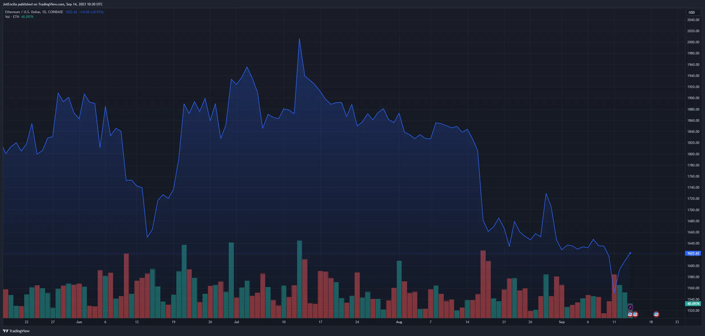 ETHUSD trading at $1,622 as of Thursday, Sept. 14. Chart: TradingView.com