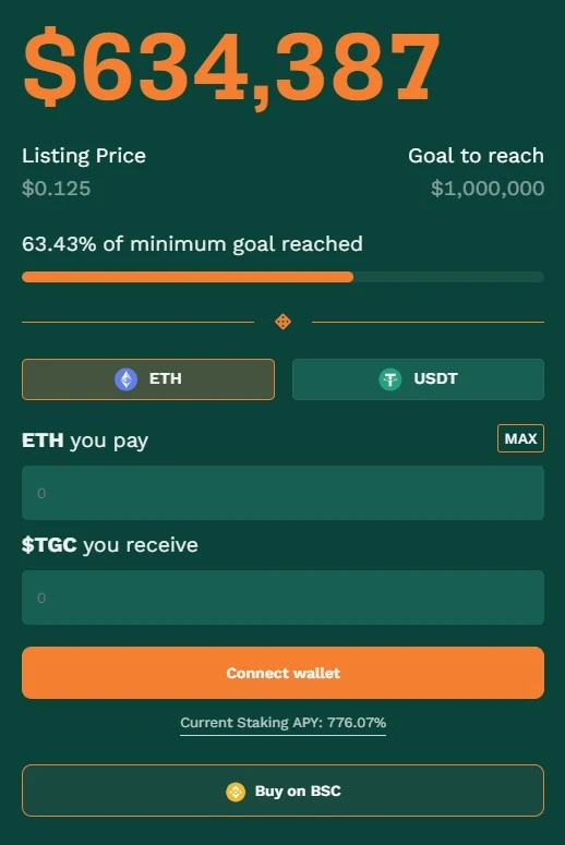 To participate in TG.Casino’s presale, investors can go to the official website and connect their software wallets. The wholesale price of 1 TGC is $0.125
