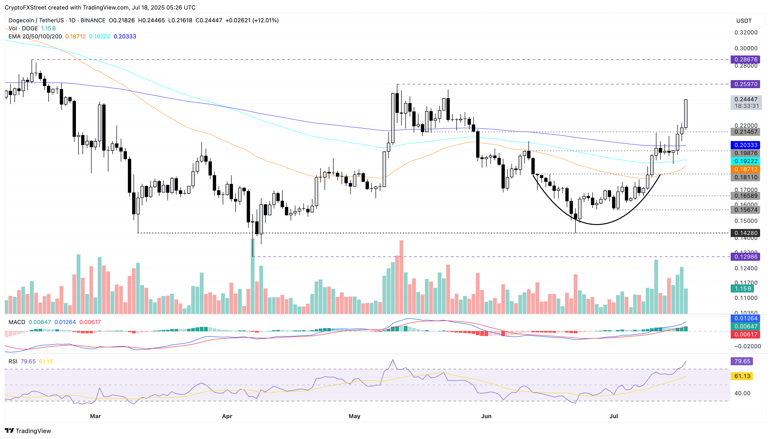 Однак, якщо DOGE не зможе зберегти свій імпульс, він може знову протестувати рівень закриття 0,2145 доларів США від 17 травня.