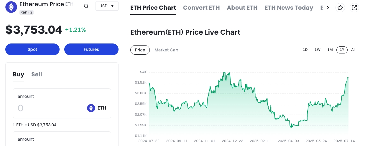 Ethereum продовжує лідирувати на ринку альткойнів, поточна ціна становить 3,771.20 доларів, що зумовлено його неперевершеною інфраструктурою смарт-контрактів та постійно зростаючим використанням з боку установ.