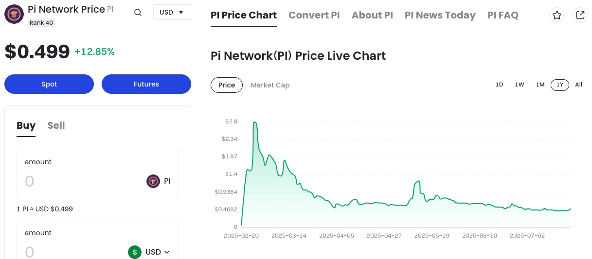 Pi Network все ще чекає на повноцінний запуск основної мережі, її торгова ціна на деяких IOU та нішевих біржах становить 0,448 долара. Її унікальна модель мобільного майнінгу привабила десятки мільйонів користувачів по всьому світу, створивши одну з найбільших передспільнот токенів у сфері криптоактивів.