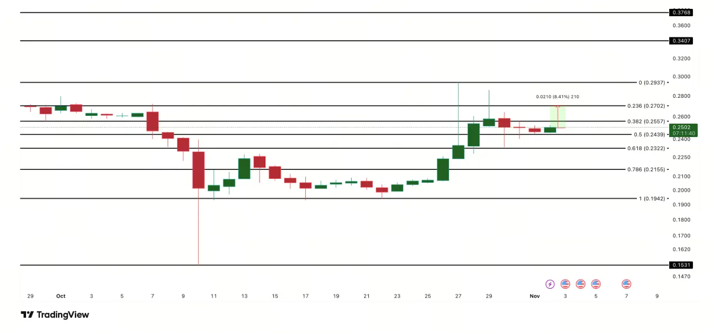 Ключові цінові рівні: прорив 0,255 долара може забезпечити більший зростання