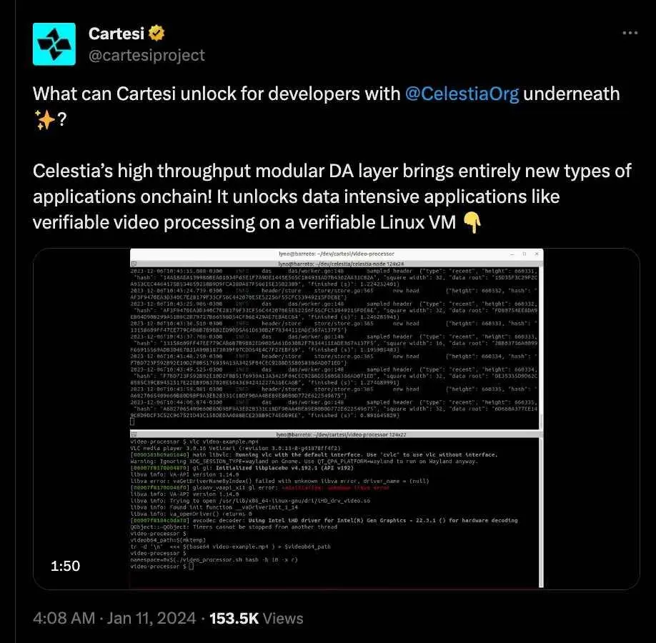 Cartesi — це протокол зведення для конкретної програми з середовищем виконання Linux, створеним на Celestia.