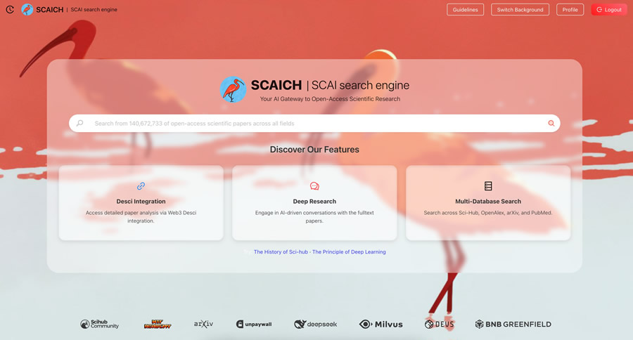 ! Накочується хвиля інновацій, спрямованих на революцію в способі отримання та взаємодії з дослідницькою інформацією. Нещодавно було офіційно оголошено про SCAICH (Scientific AI Search Engine), некомерційний технологічний продукт, створений у сильній науково-дослідницькій атмосфері спільноти Sci-Hub. SCAICH – це не лише академічна пошукова система, а й комплексна платформа, присвячена створенню наскрізного, універсального дослідницького досвіду. Він відкритий для вчених з усього світу, працює за моделлю «безкоштовний + код запрошення» та підтримує свою стійкість за допомогою пожертвувань та реклами, а також сповнений рішучості стати розумним мостом між дослідниками та відкритою наукою, яка підтримується незрівнянно потужною екосистемою даних наукових досліджень Sci-Hub.