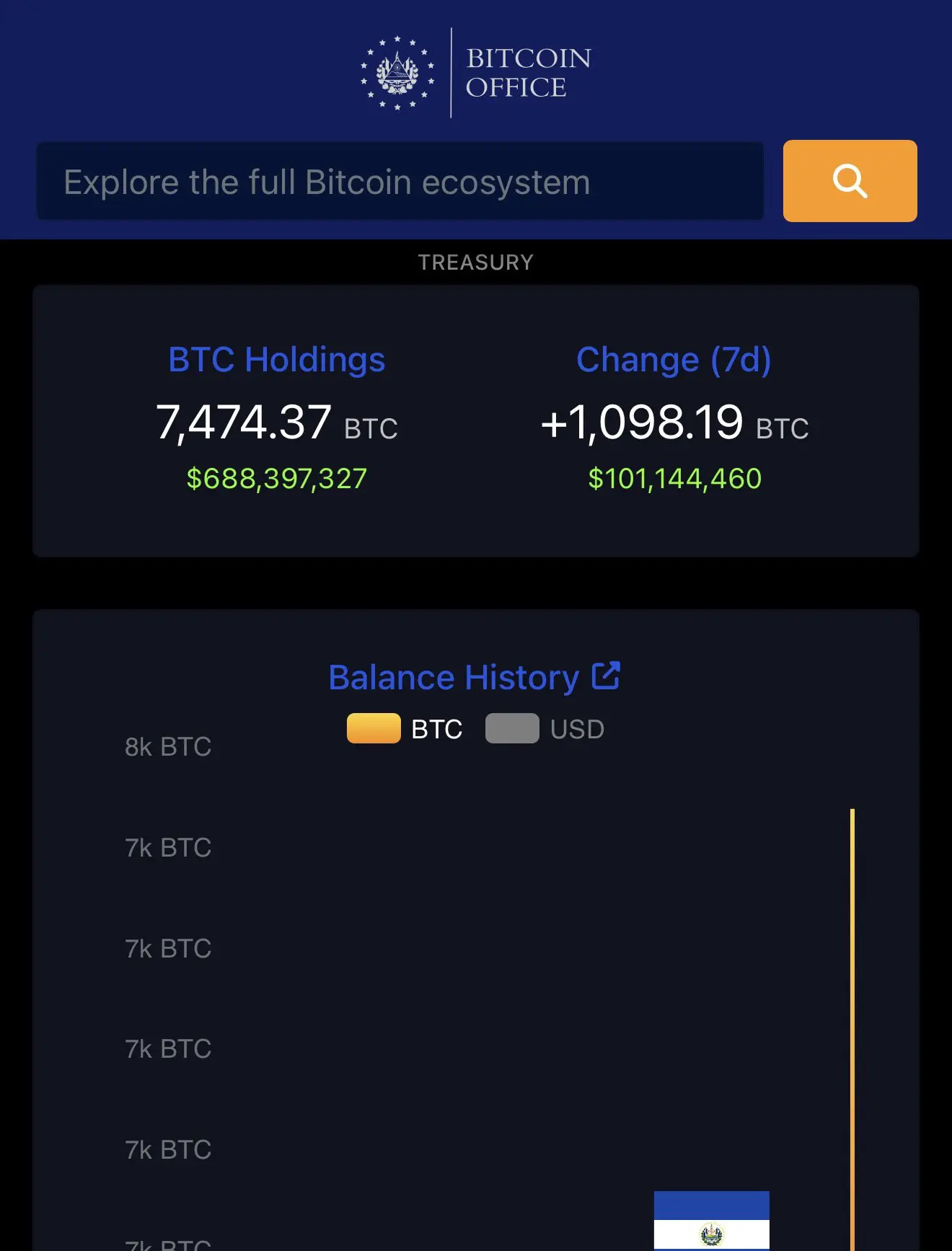Цей крок збільшив його резерви Bitcoin до понад 7 474,37 BTC, вартість яких приблизно дорівнює $700 мільйон, незважаючи на рекомендації Міжнародного валютного фонду (IMF) зупинити придбання.