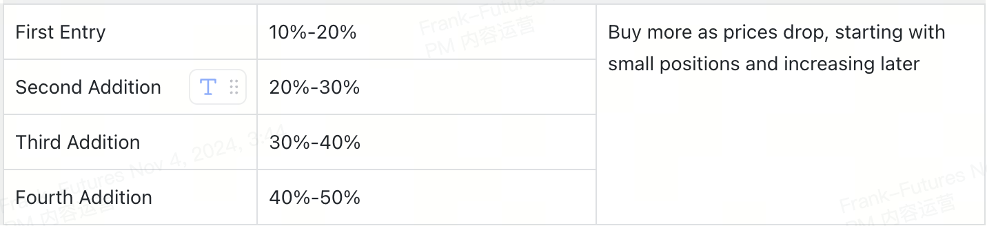 Ưu điểm: Mỗi vị thế bổ sung sẽ làm tăng tổng chi phí nắm giữ, chia sẻ rủi ro. Nếu thị trường được đánh giá đúng, phương pháp này có thể mang lại lợi nhuận đáng kể.
