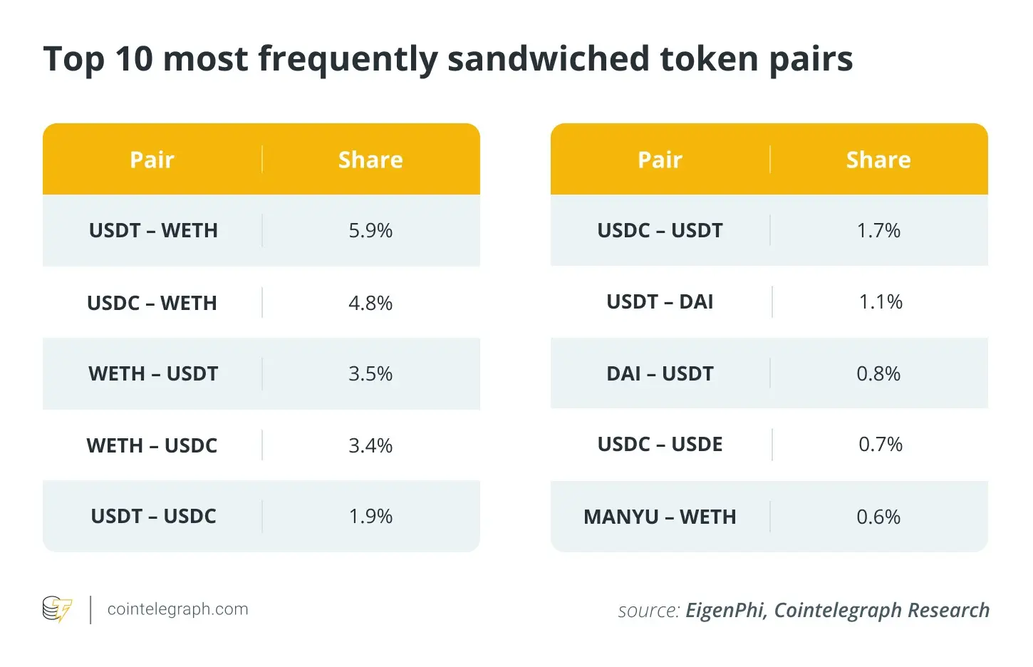 ## Các cặp giao dịch nào bị sandwich nhắm đến?