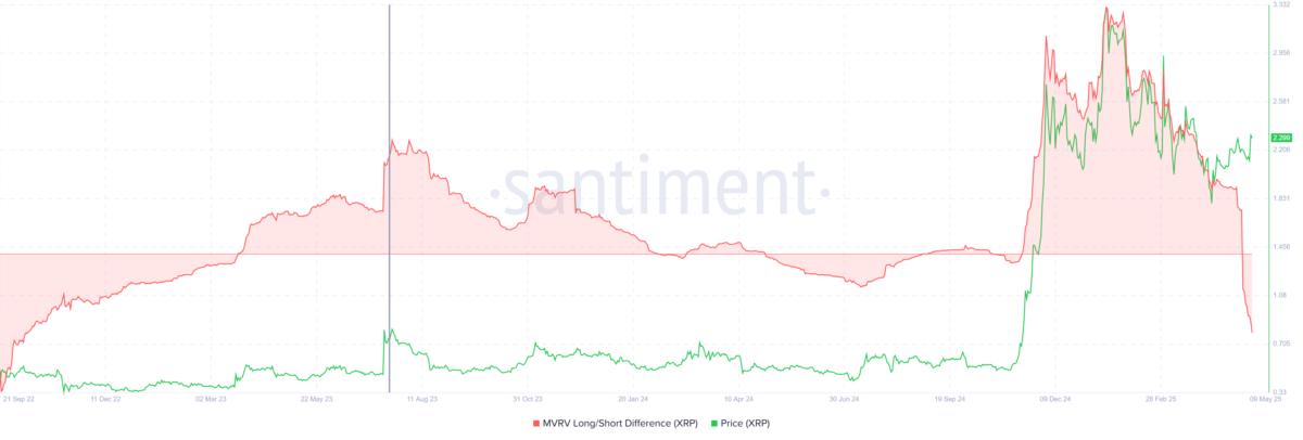 Sự khác biệt MVRV Long Short, đang ở mức thấp nhất trong 31 tháng, chỉ ra rằng lợi nhuận của những người nắm giữ ngắn hạn đang tăng lên. Mức thấp của chỉ báo này cho thấy rằng STH, những người thường bán nhanh, có thể sẽ chốt lời. Điều này tạo ra tâm lý giảm giá trên thị trường.