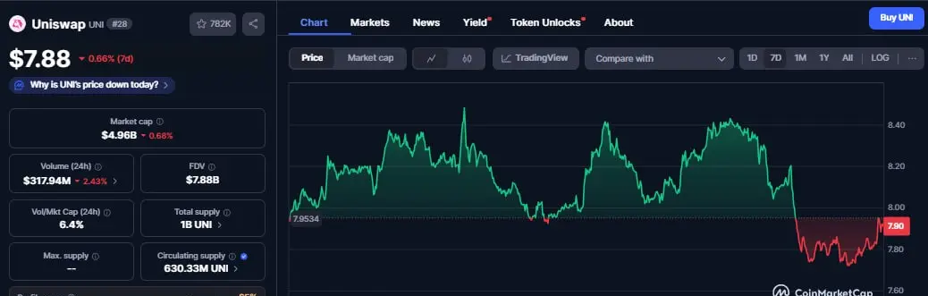 Hiện đang giao dịch ở mức $7.88 sau khi mất gần 20% giá trị trong tháng trước.