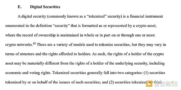 SEC cũng phân loại các phiên bản token hóa của các sản phẩm đã rõ ràng là chứng khoán, như quỹ đầu tư thị trường tiền tệ token hóa, cổ phiếu và các sản phẩm đầu tư cấu trúc khác, vào nhóm chứng khoán kỹ thuật số.