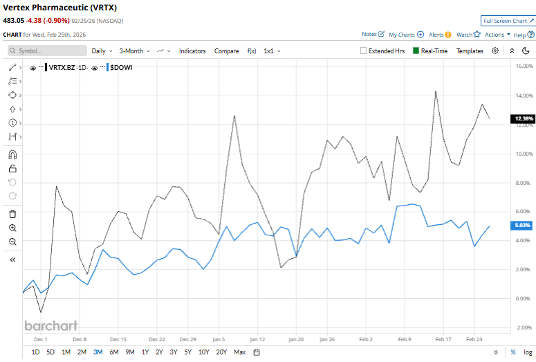 VRTX đã hoạt động kém hơn đối thủ quan trọng của mình là Biogen Inc. (BIIB), vốn đã tăng 8,4% trong năm 2026 và tăng 33% trong năm qua.