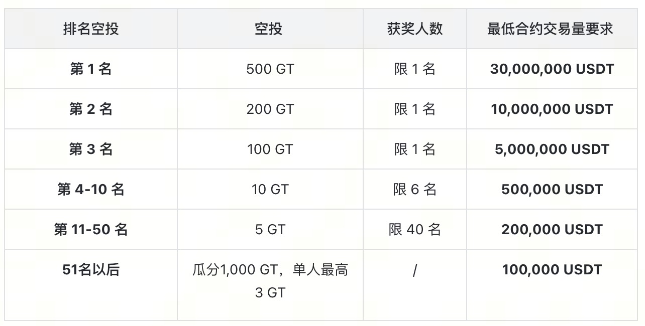 2. 參與交易排名大賽,單人可贏得高達 500 GT 空投