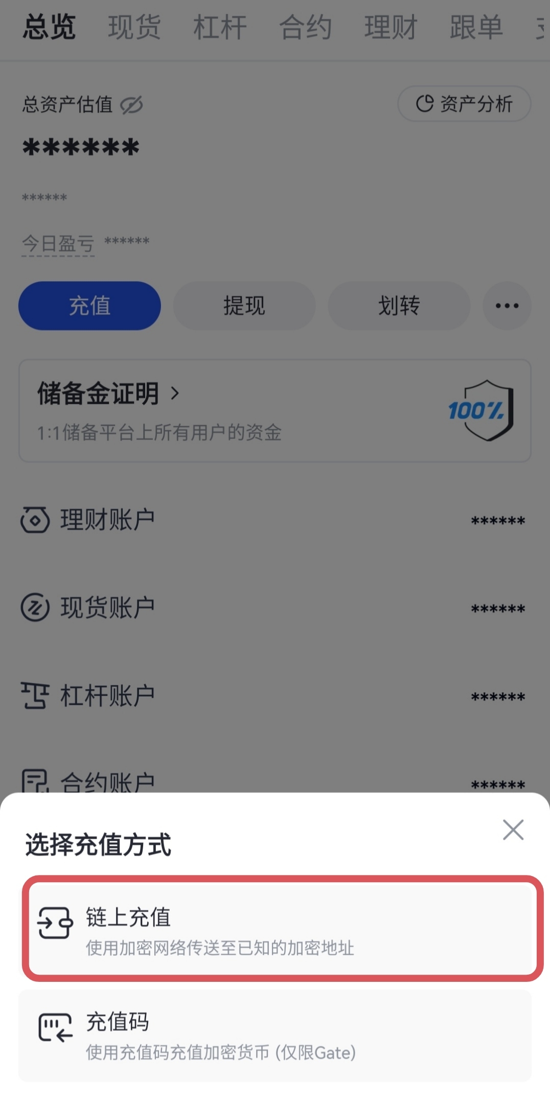 6. 點擊“鏈上充值”並選擇充值網路。
