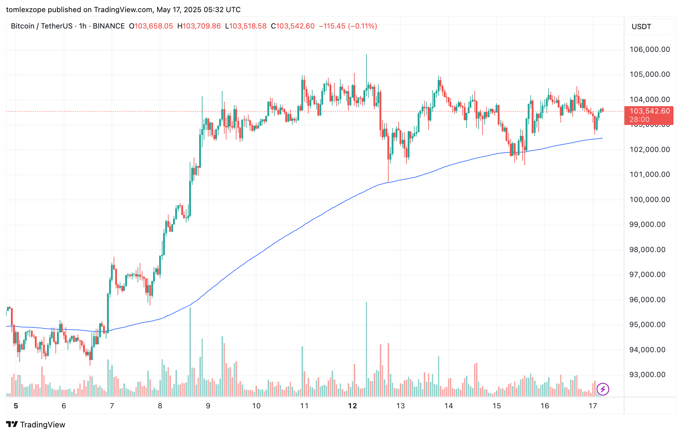 經過幾周的強勁看漲行情,這款旗艦加密貨幣似乎已穩定在$102,000 – $105,000的整合區間內。盡管市場上普遍呼籲重新奪回歷史最高點,但比特幣價格目前似乎在投資者中面臨一定程度的猶豫。