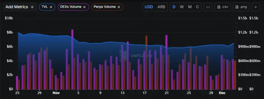 另一方面,永續合約市場及去中心化交易所(DEX)上的交易量持續橫盤,目前分別約為 6.39 億美元和 6.07 億美元。在 11 月時,這三項指標曾出現過明顯的突破。