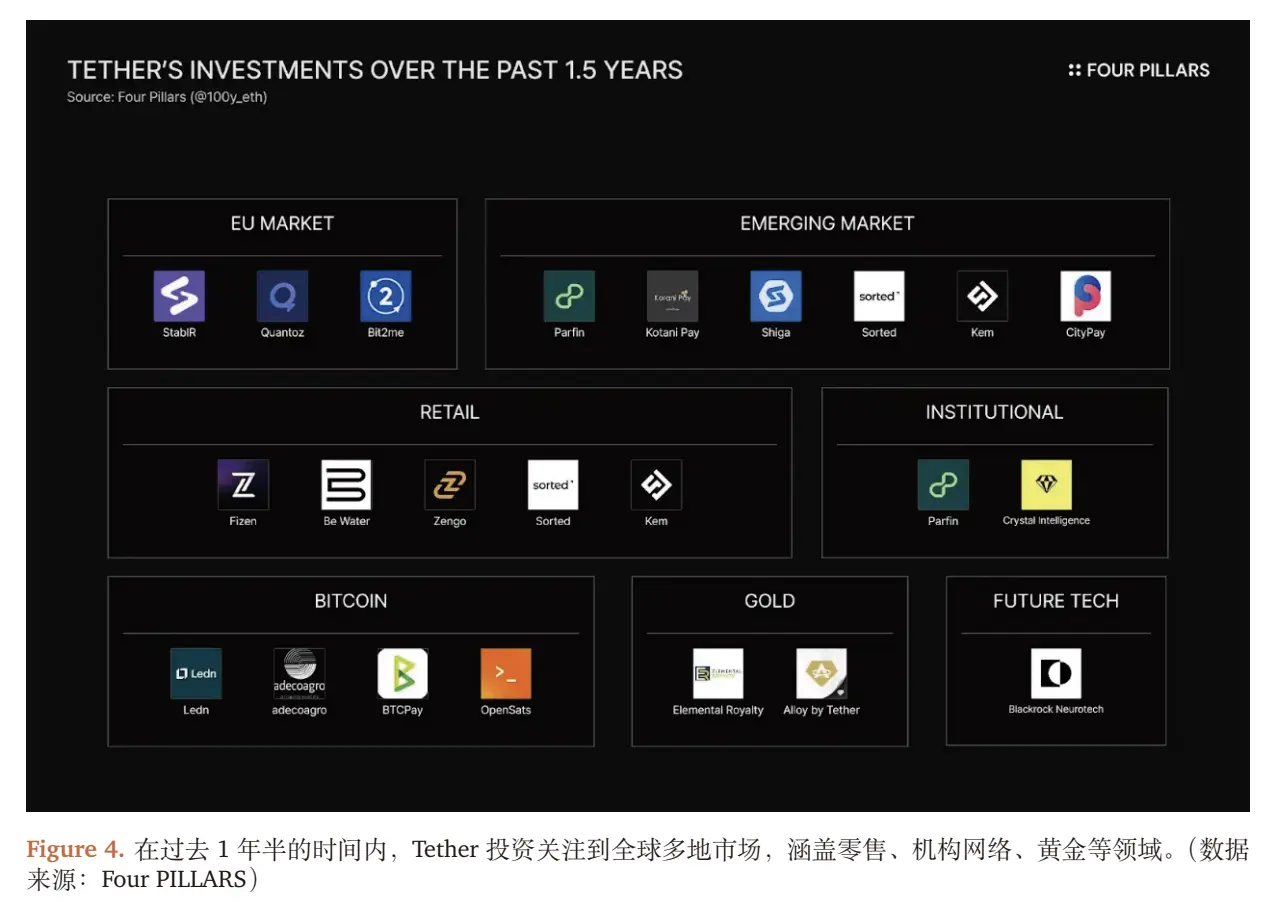 我們透過追蹤 Tether 的鏈上地址與業務佈局發現,其已超越「穩定幣發行方」的定位,正在構建「抗通膨資產儲備 + 全球穩定幣發行 + 鏈上分銷網絡 + 能源」的「影子央行」體系: