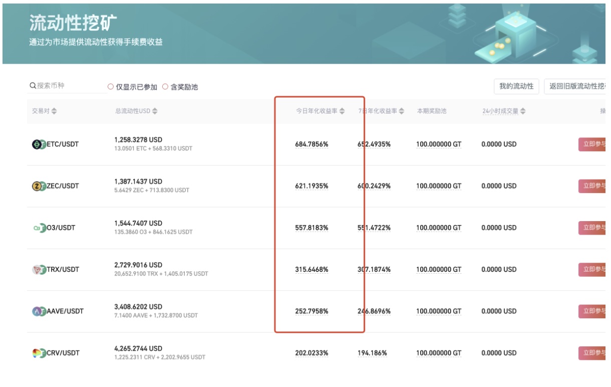 GT/USDT流动性挖矿(奖励池500GT,7日年化收益率达11%)