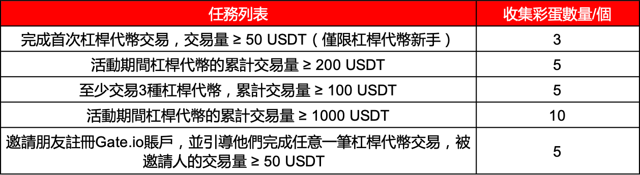 為慶祝即將到來的周末復活節,Gate 杠桿代幣將特別送出價值 7,000 USDT 的獎池福利! 完成下列杠桿代幣相關任務,收集你的復活節彩蛋! 收集的活動彩蛋越多,獲得的獎勵份額越大! 現在就邀請好友一起參加活動吧!