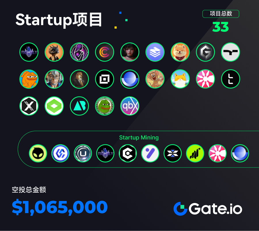 本周期Gate上线了32个新项目和33个Startup项目,总空投价值为106.5万美元。