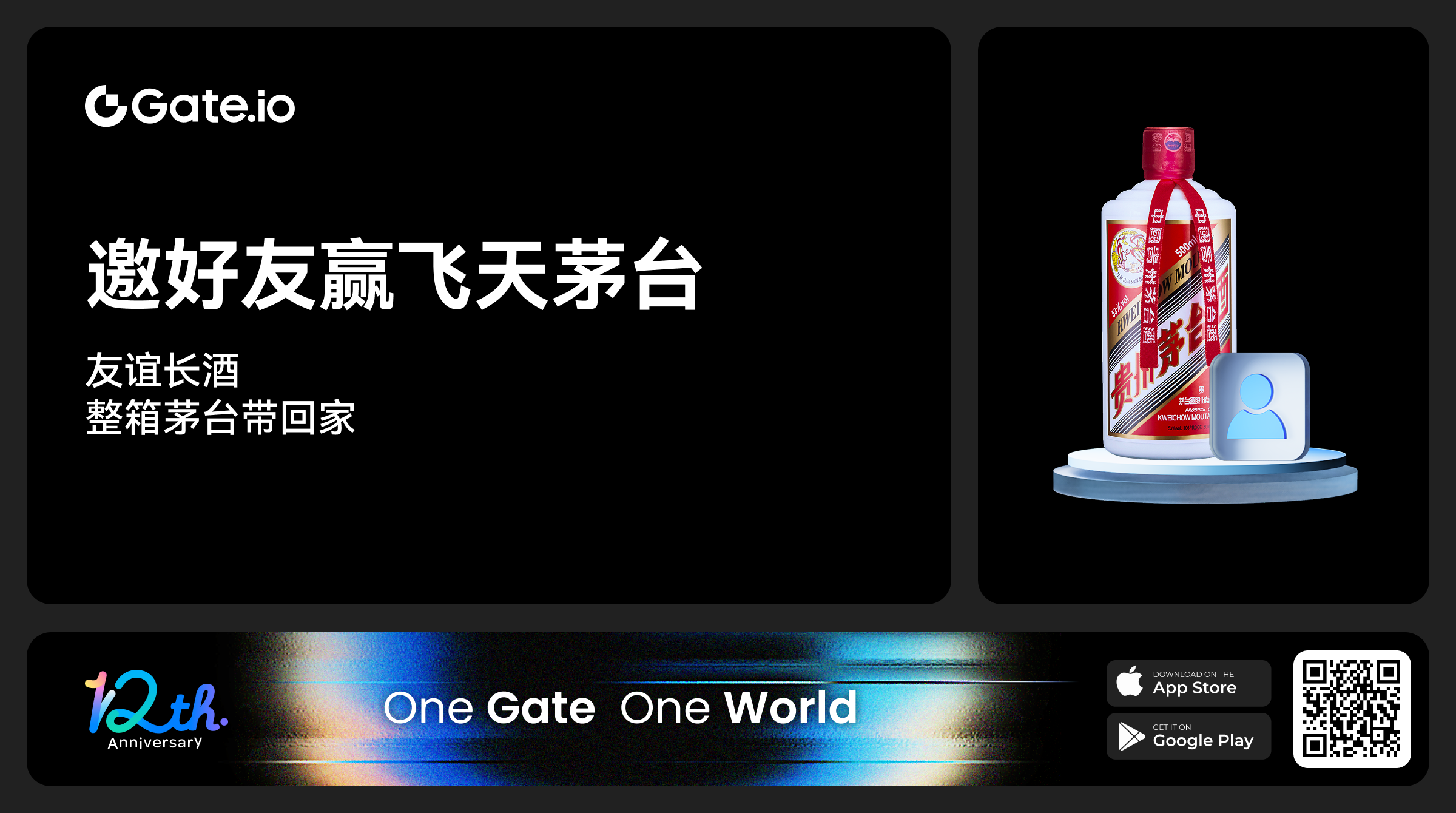 Gate隆重推出五一特别活动——邀请好友赢飞天茅台,友谊长"酒",整箱茅台带回家。