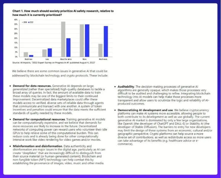 此外,正如 Coinbase 所强调的那样,人工智能的区块链有可能解决许多问题。这两种技术的融合可以推动这两个行业达到新的高度。值得注意的是,就在几年前,加密货币和人工智能领域的机会还相当有限。