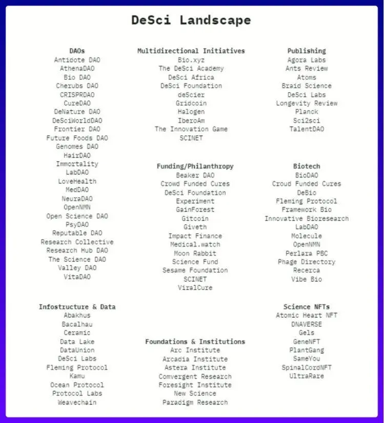 DeSci 的发展前景实际上比想象的要大。部分代表性项目: