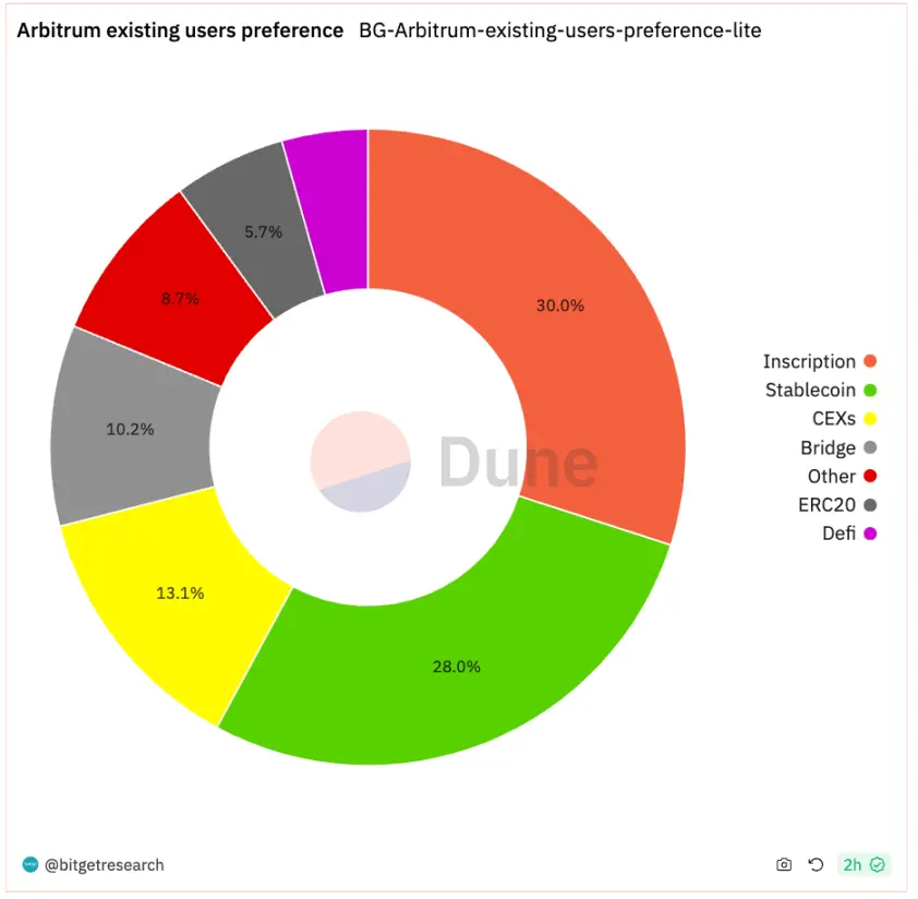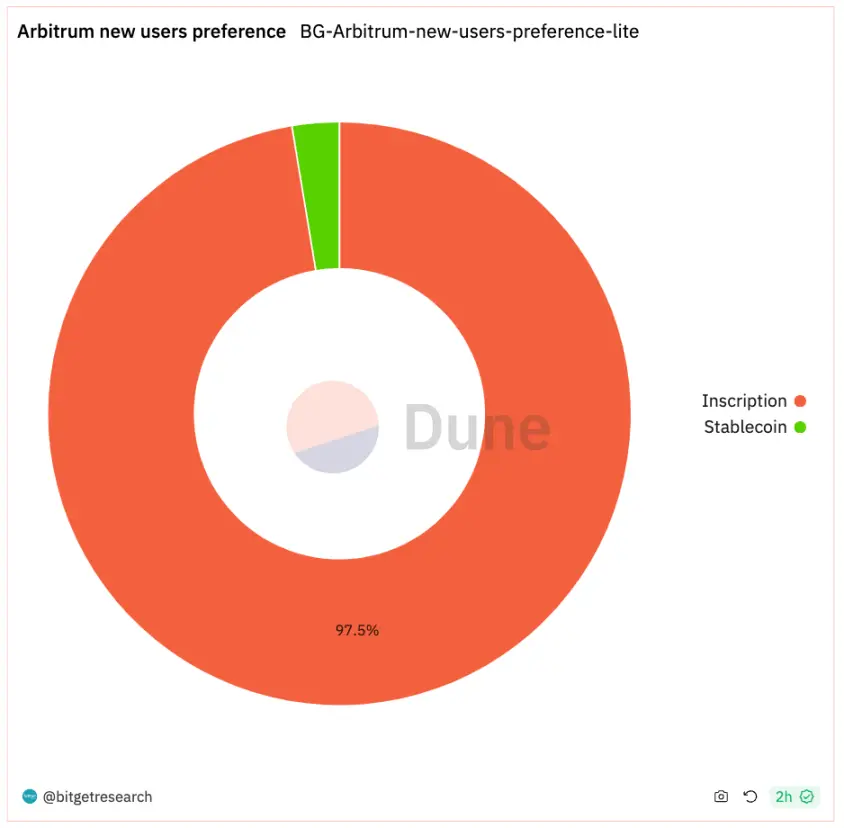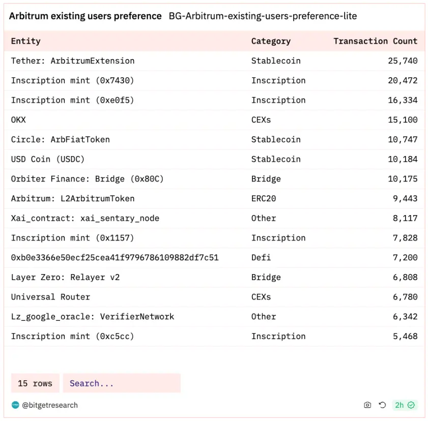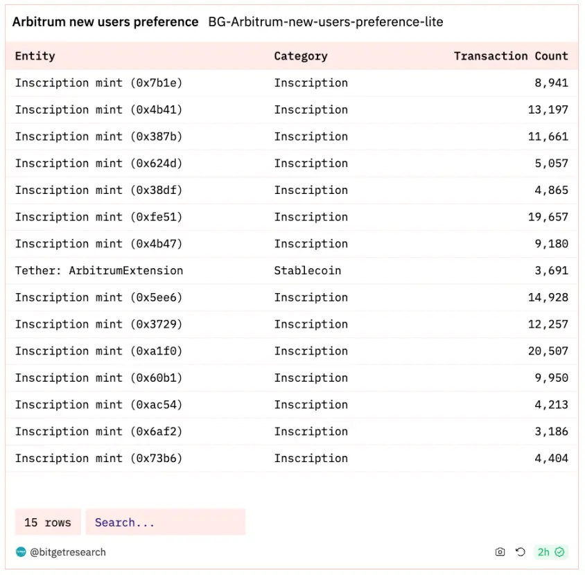 Arbitrum 昨日新增活跃用户的活跃主要集中在了铭文市场上。