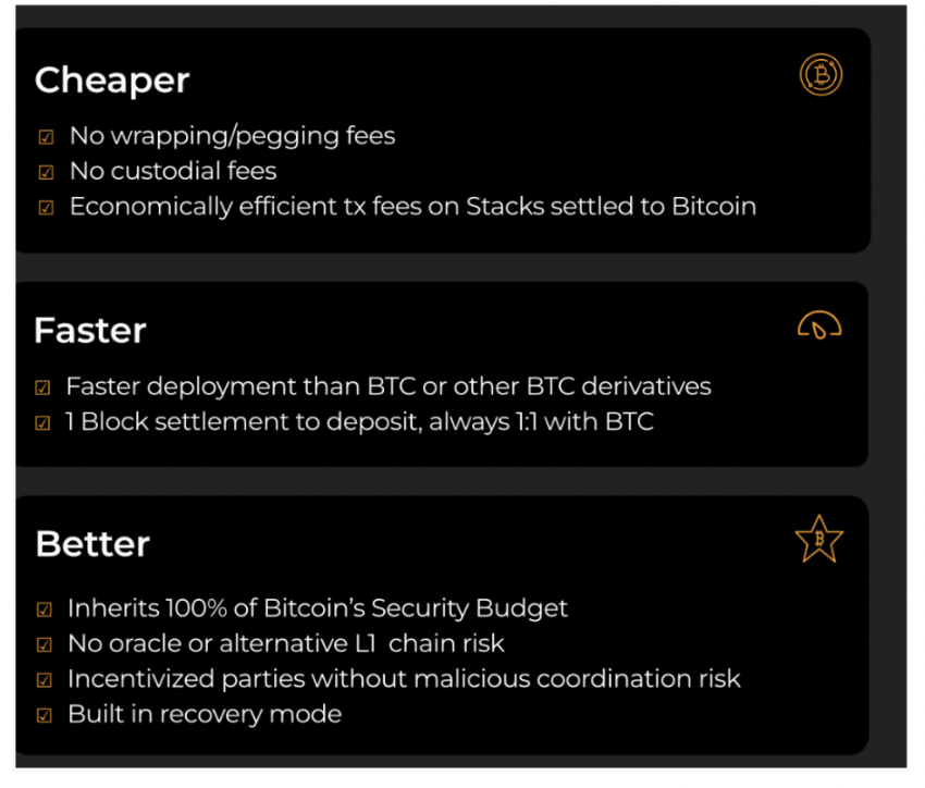 此外,得益于 Stacks 的设计,sBTC 将实现 100% 的比特币最终确定性,这意味着 Stacks 层的交易将与比特币一样不可逆。