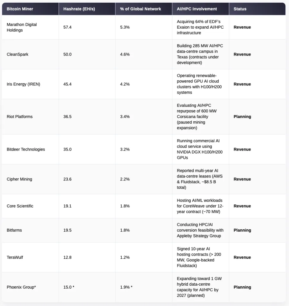 七家十大算力矿工中的七家报告称,他们通过人工智能或高性能计算(HPC)获得了收入。其余三家计划效仿,CryptoSlate报道。